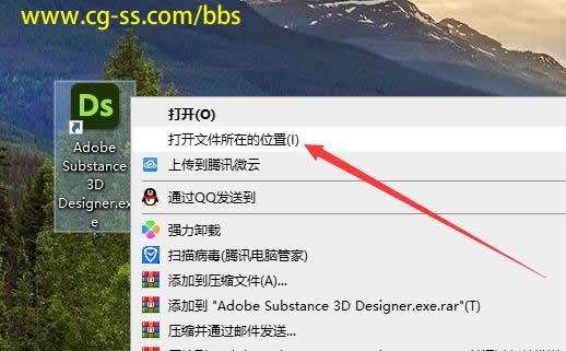 6,在桌面上,右键"Adobe Substance 3D Designer.exe",打开文件所在的位置,这个位置就是安装目录