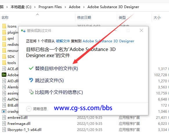 7,在破解文件中,复制"Adobe Substance 3D Designer.exe"到安装目录,替换