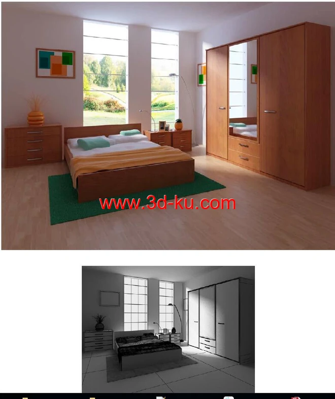 房间场景,卧室,衣柜模型,柜镜,儿童床,3D模型