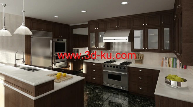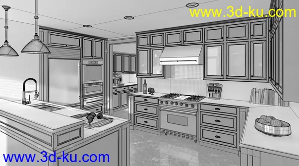 开放式厨房场景,开放式厨房模型,橱柜,厨房电器模型,3D模型