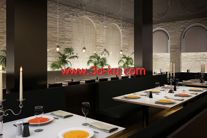 吊灯模型,餐厅,餐馆模型,西餐厅场景,3D模型