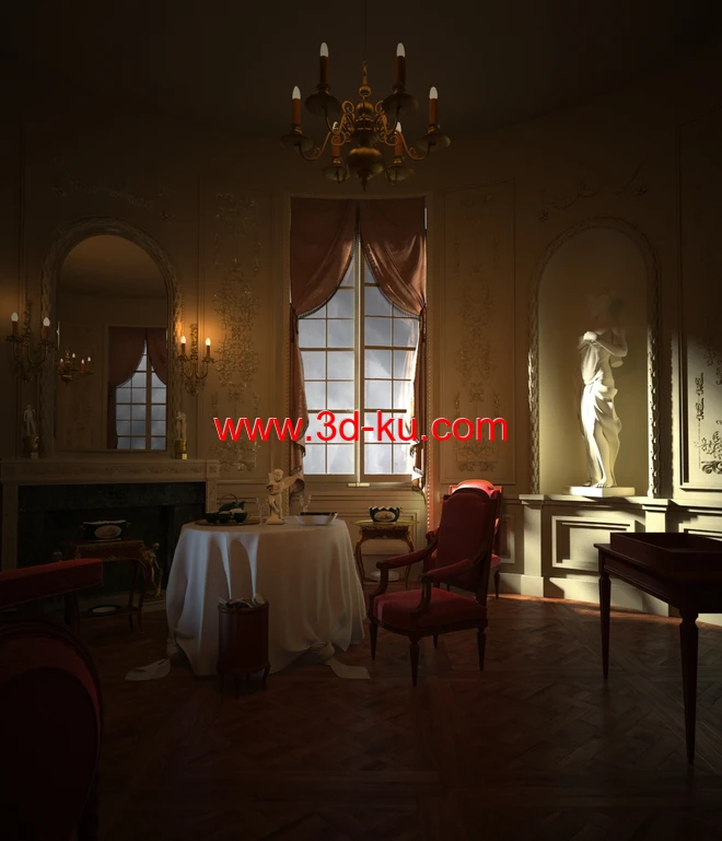欧式室内场景,雕塑模型,吊灯,卧室场景,3D模型