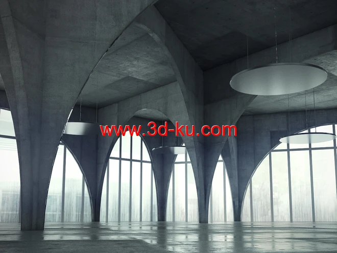创意建筑,大堂,展厅模型,混凝土建筑,3D模型