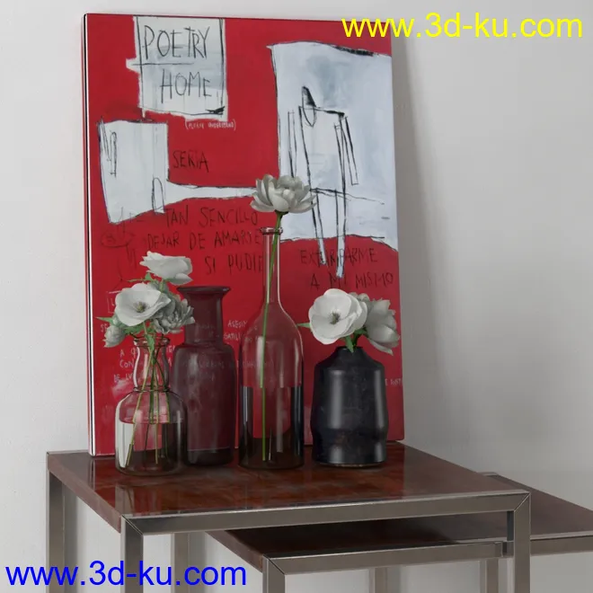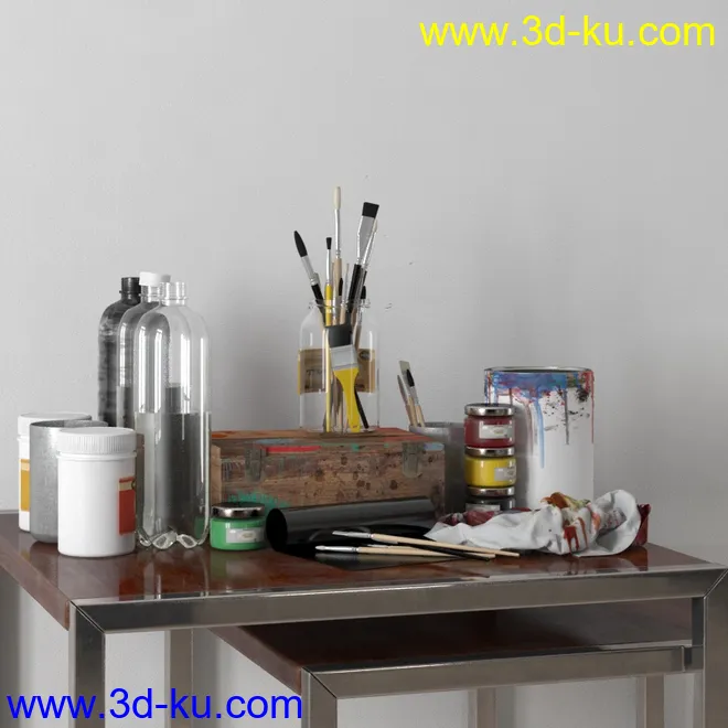 画笔,颜料,塑料瓶,花瓶,茶壶,茶杯,花,铁盒,蜡烛,酒瓶,洋酒,室内物品模型合集