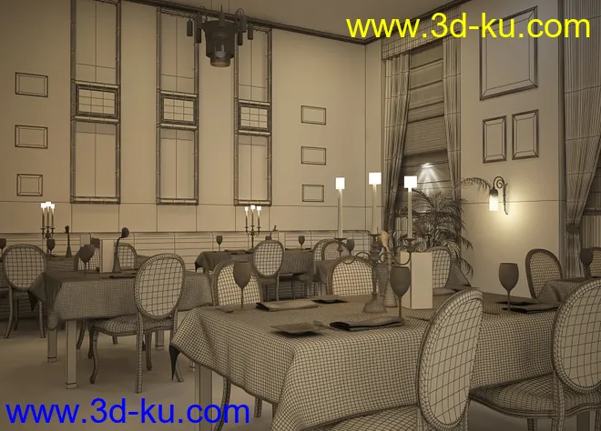 餐厅场景,餐厅模型,餐桌,餐具,蜡烛模型,西餐厅,3D模型