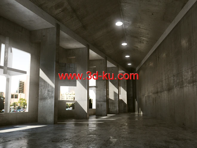 混凝土建筑,混凝土结构,三角屋顶场景,角落场景,3D模型