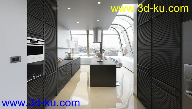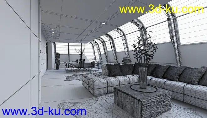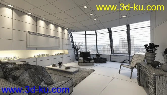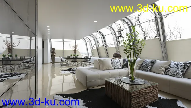 圆形大房子,现代房子,室内设计,精品套房,四周透光,3D模型