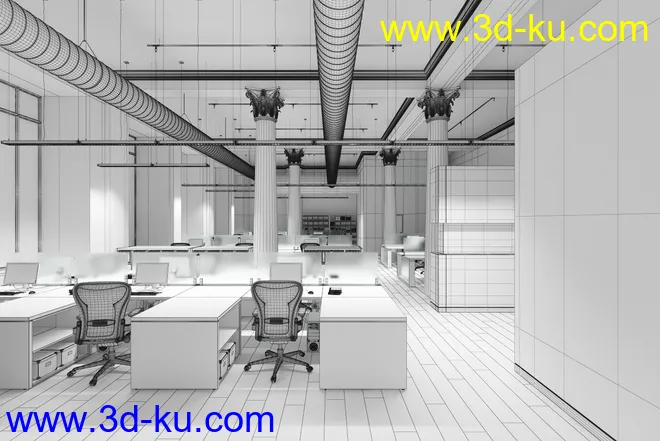 办公室场景,电脑,公办桌椅模型,3D模型