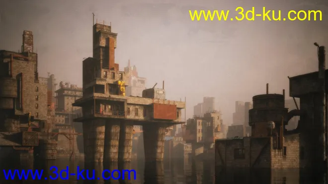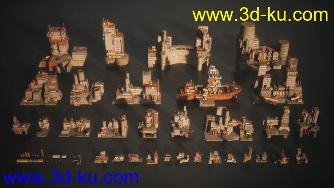 废弃城市模型,荒芜之地模型,末日建筑模型,废墟模型,无人区模型