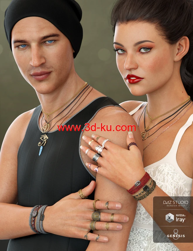 Unisex Jewelry for Genesis 8 Male(s) & Female(s)