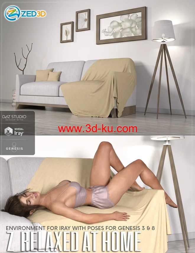 Z Relaxed at Home – Indoor Environment with Poses for Genesis 3 and 8