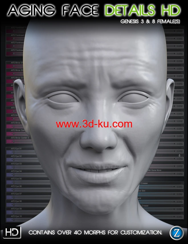 Aging Face Details HD for Genesis 3 and 8 Female(s)