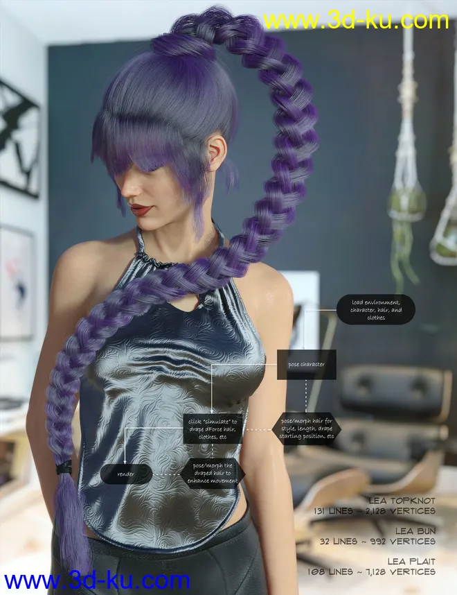 dForce Lea Hair 2 for Genesis 3 and 8 Female(s)