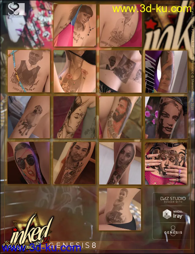 Inked Vol.22 – Just Portraits for Genesis 8 Female(s)