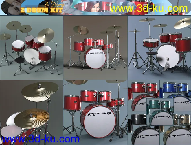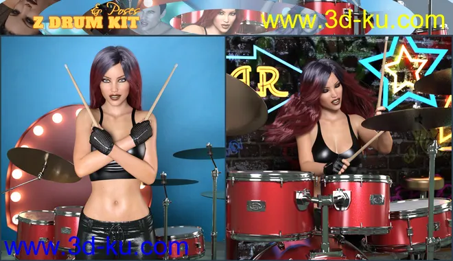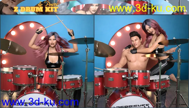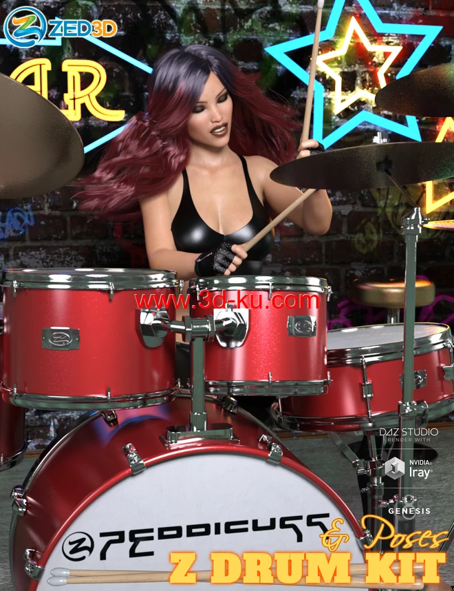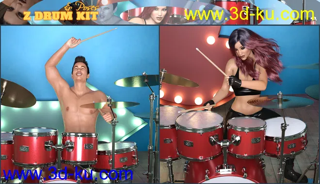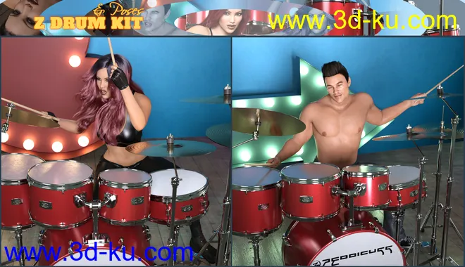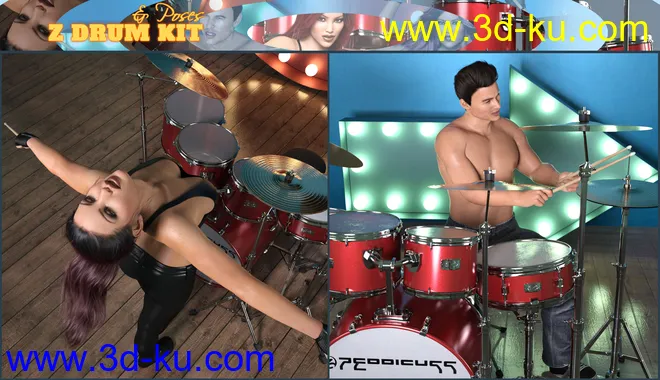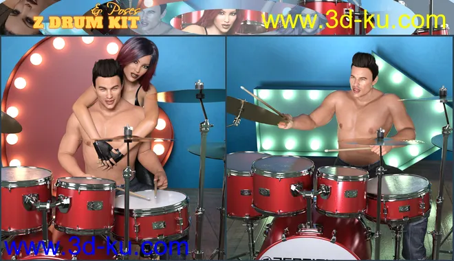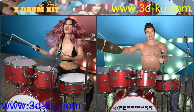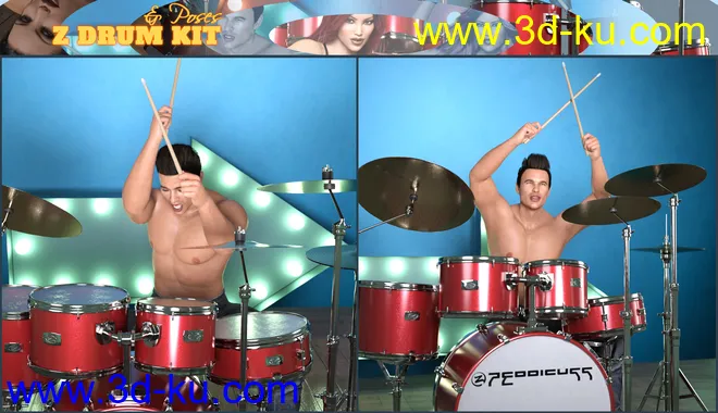 Z Drum Kit and Poses for Genesis 3 and 8