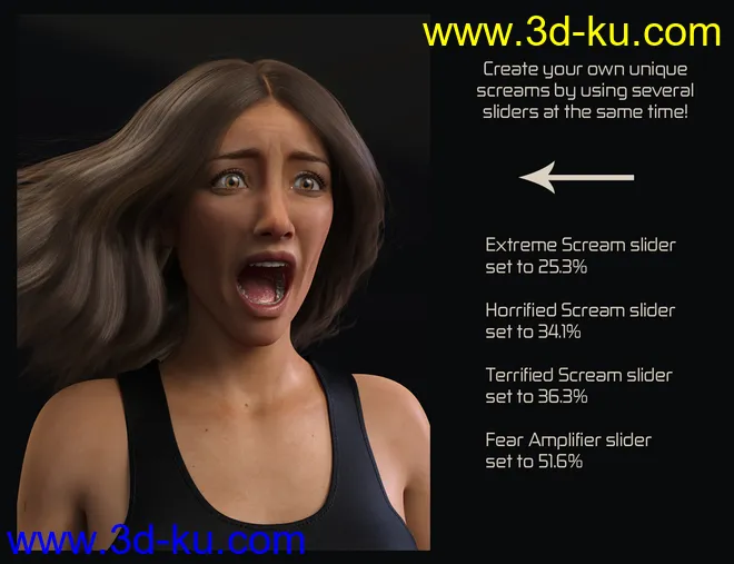 Biometric Expressions – Screams of Terror and Battle! for Genesis 3 Female(s)