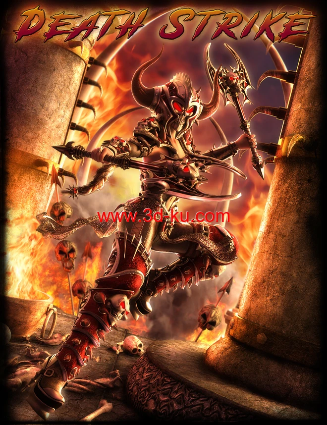 dForce Death Strike Outfit, Poses and Battleaxe for Genesis 8 Female(s)