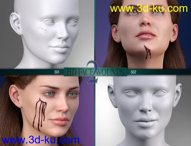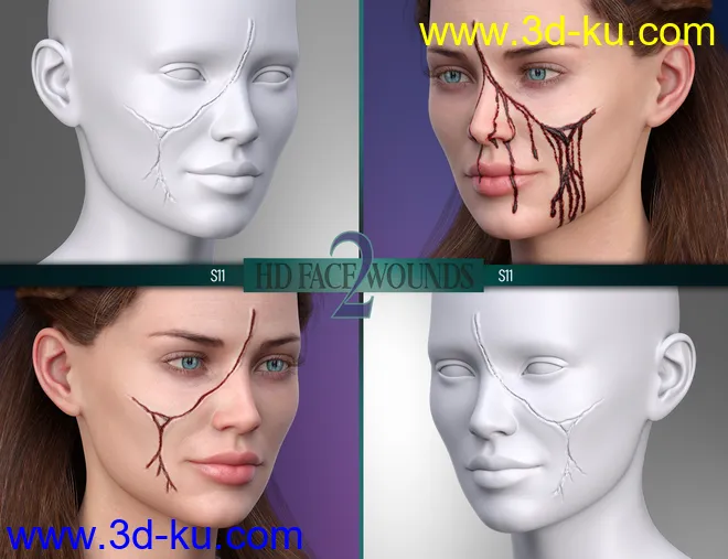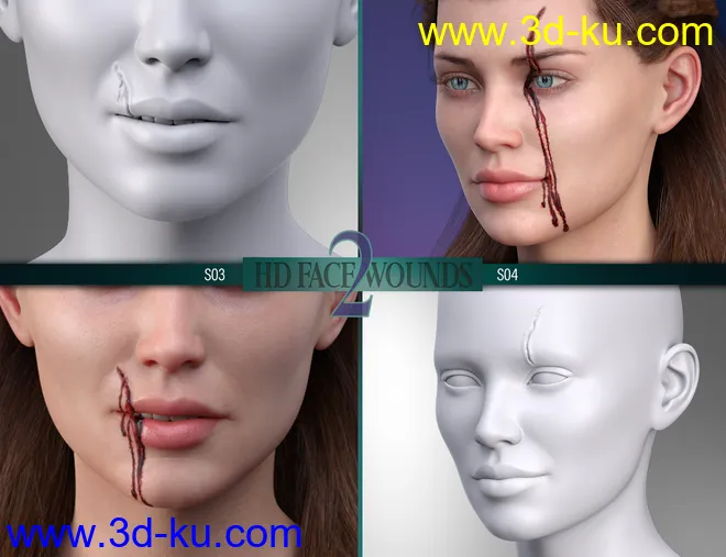 HD Face Wounds 2 for Genesis 3 & 8 Female(s)