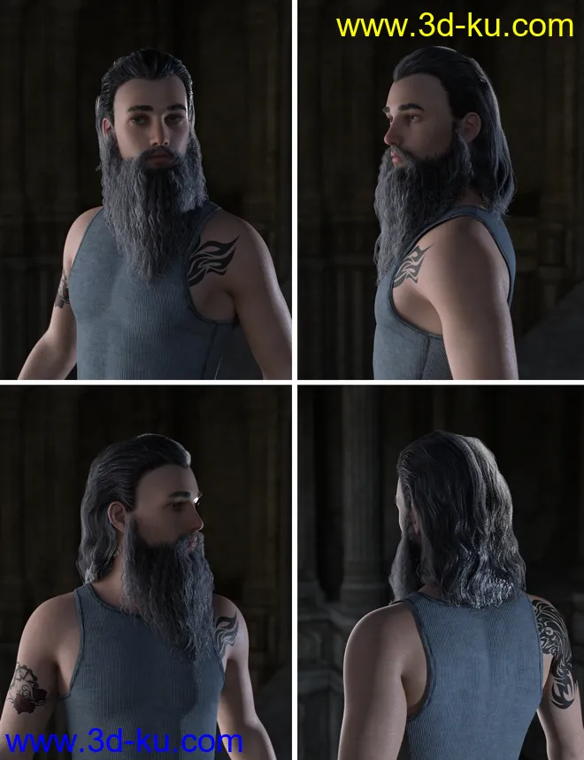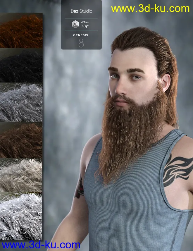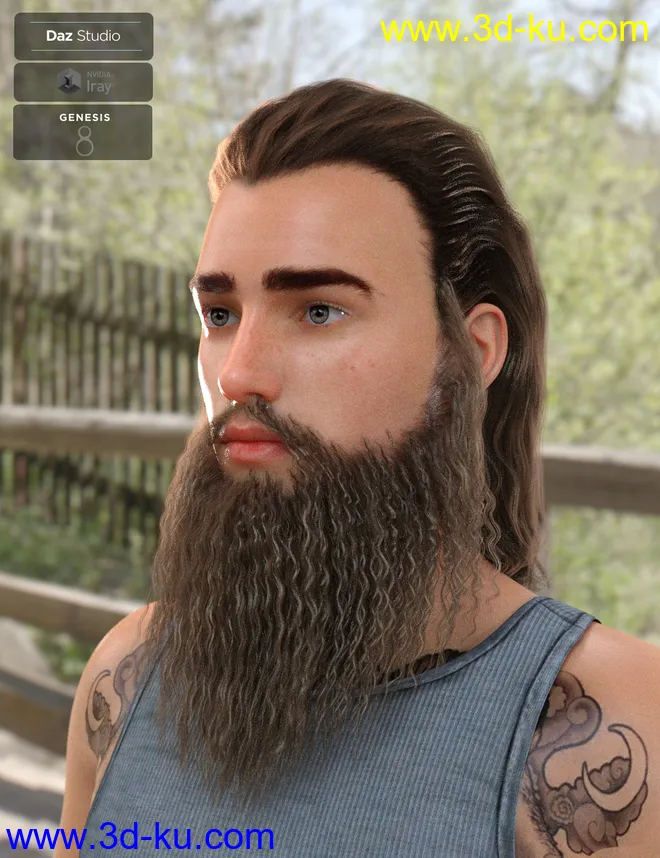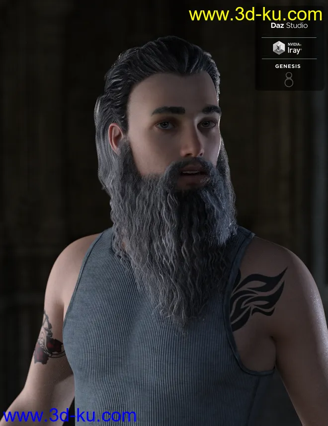 Ryanno Hair and Beard Set for Genesis 8 Male