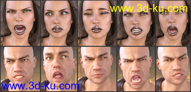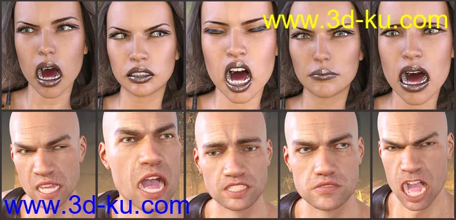 Z Faces Of Battle – Dialable and One-Click Expressions for Genesis 3 and 8