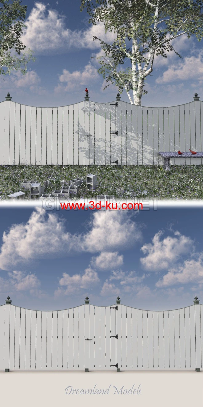 Painted Six Foot Arched Fence OBJ