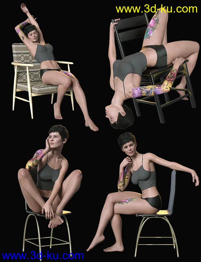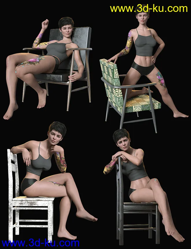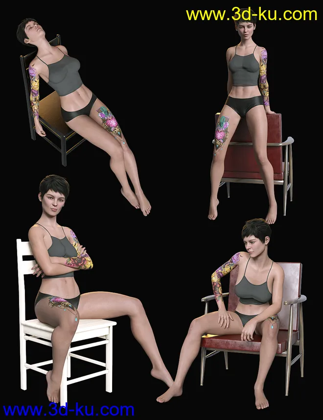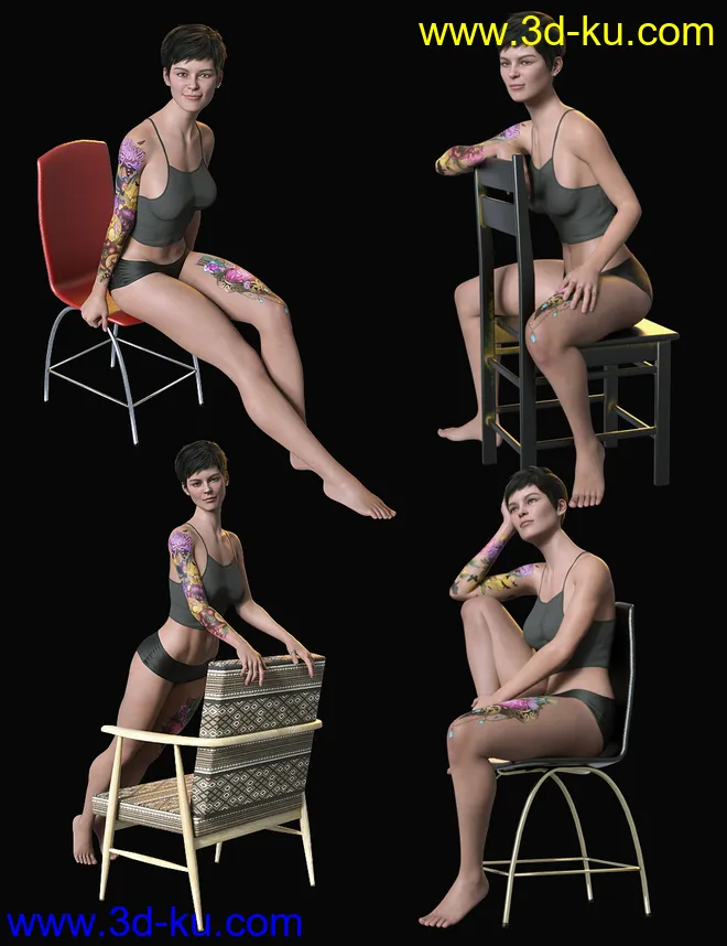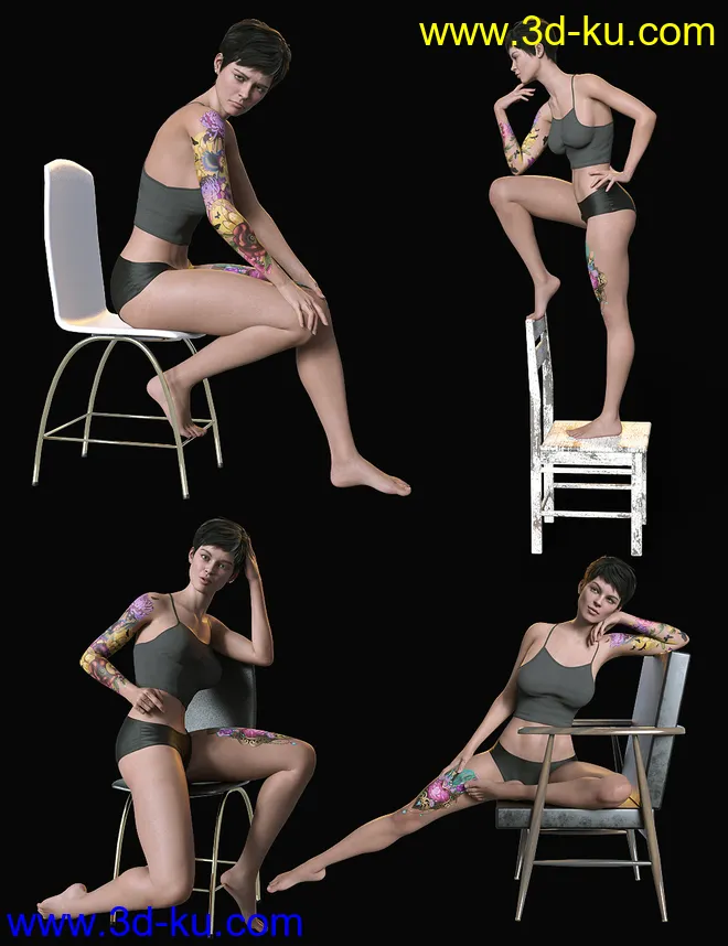 Sitting Fashion Poses and Chairs for Genesis 8.1 Female