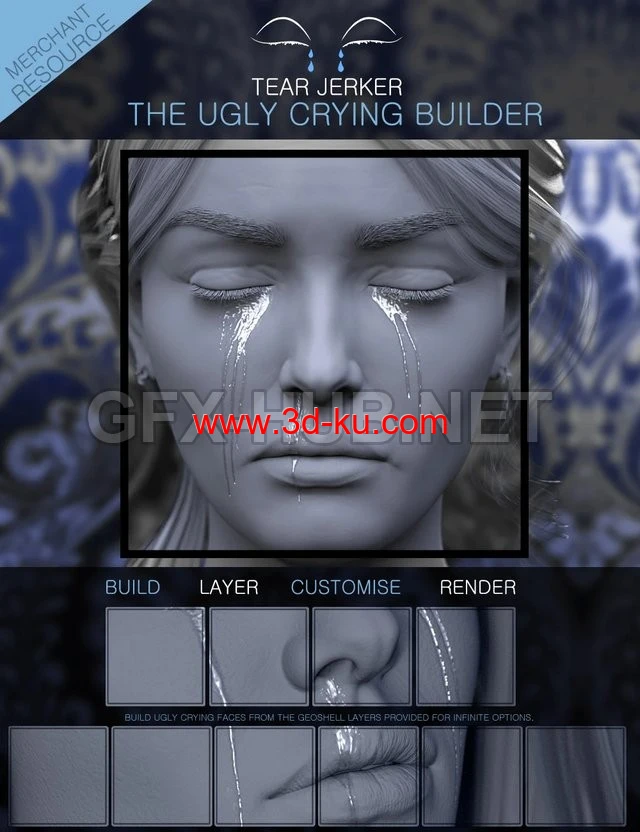 Tear Jerker the Ugly Crying Builder for Genesis 3, 8 and 8.1 Females Merchant Resource