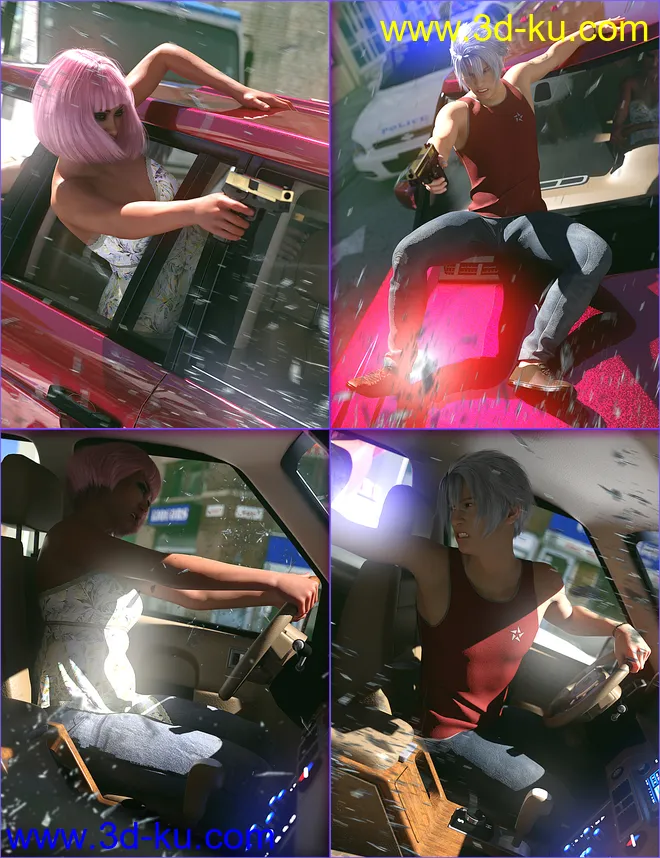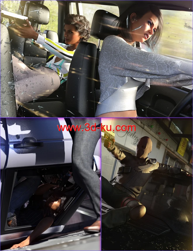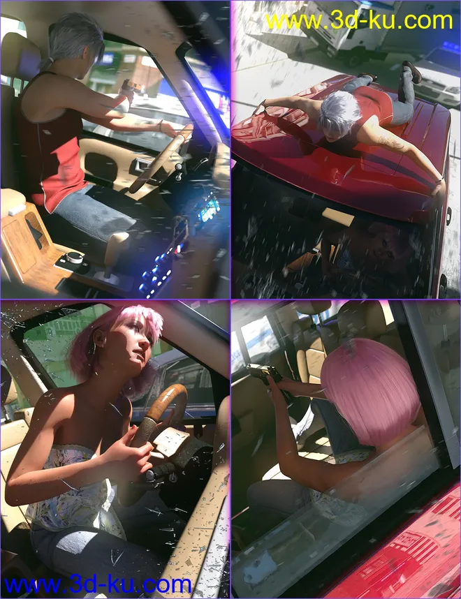 SUV Chase Scene Poses for Genesis 8