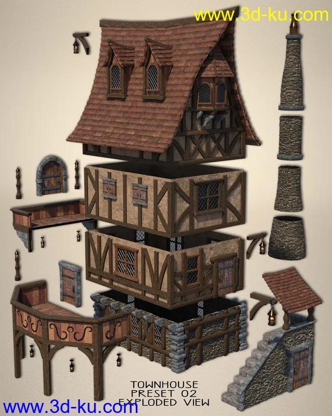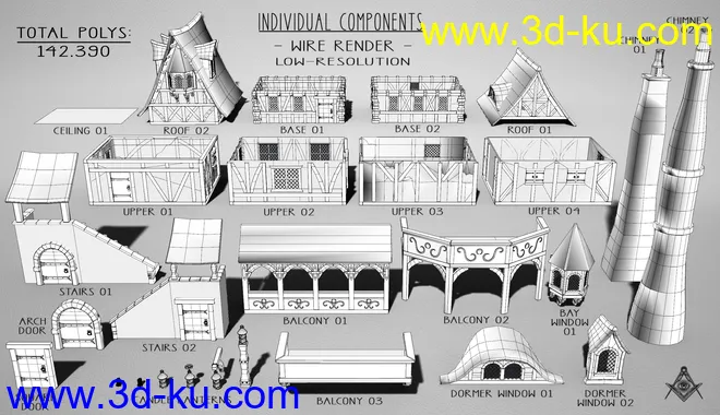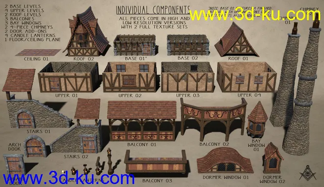 Medieval Village Houses Construction Set